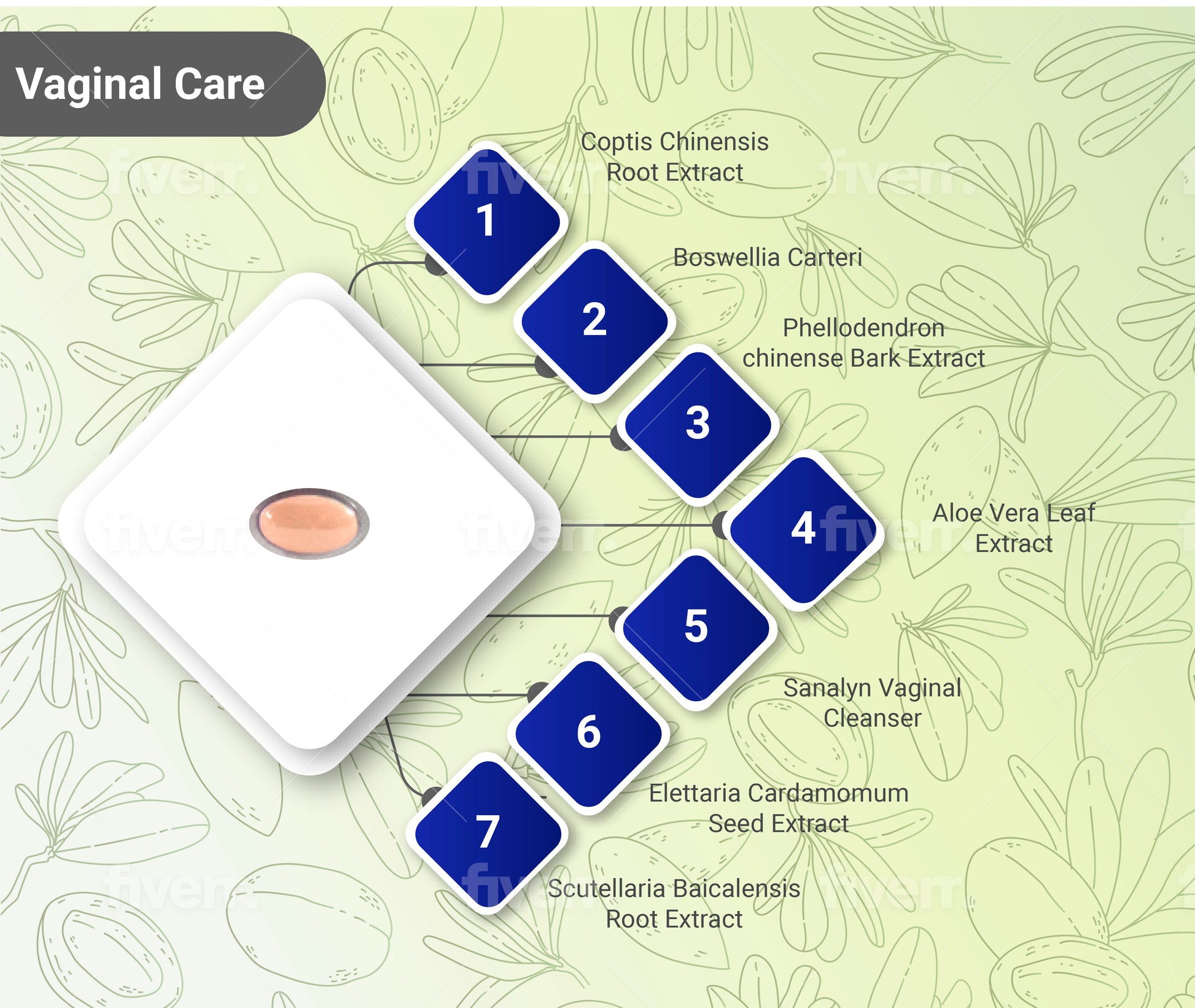 Sanalyn Vaginal Cleanser also contains Rheum Officinale Root Extract, Elettaria Cardamomum Seed Extract, Scutellaria Baicalensis Root Extract, and more concentrated herbal extracts.